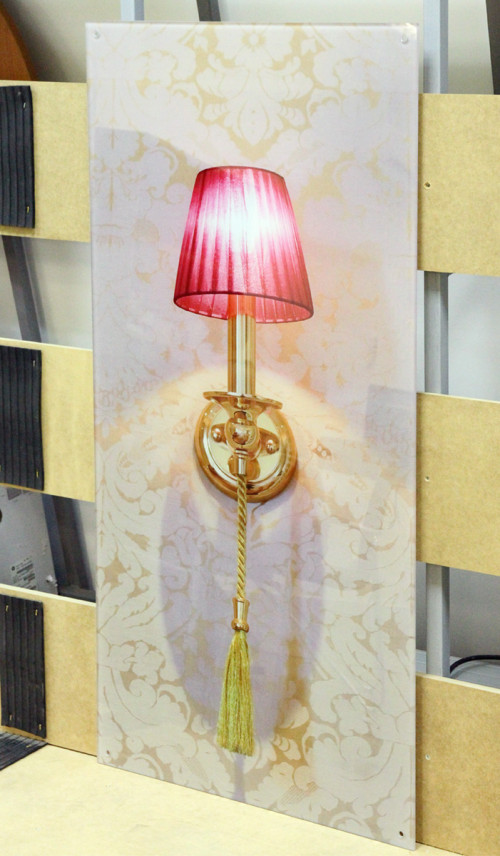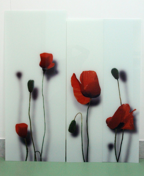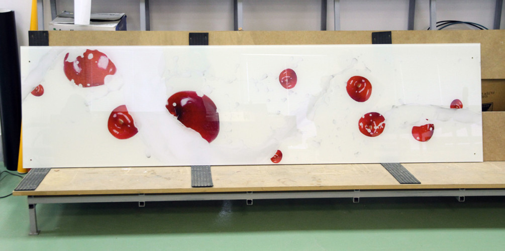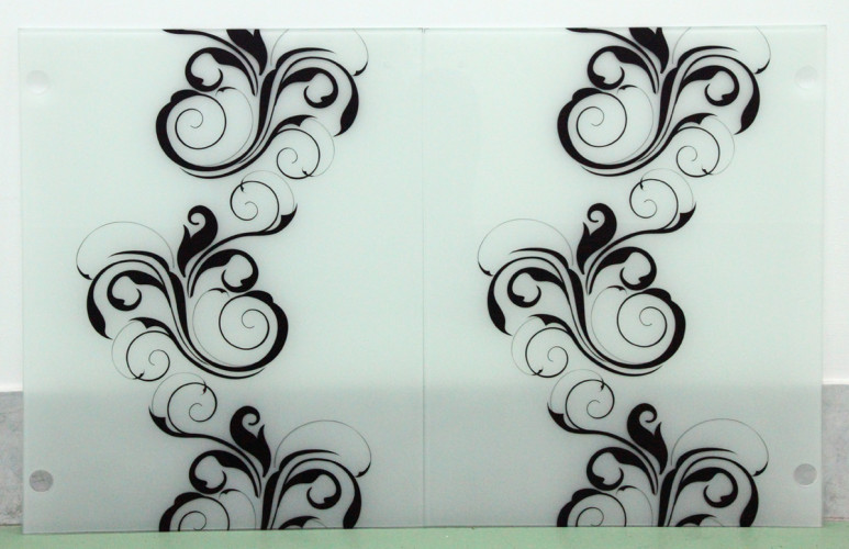 Узор и красный фон выполнены на стекле "триплекс" с применением УФ печати